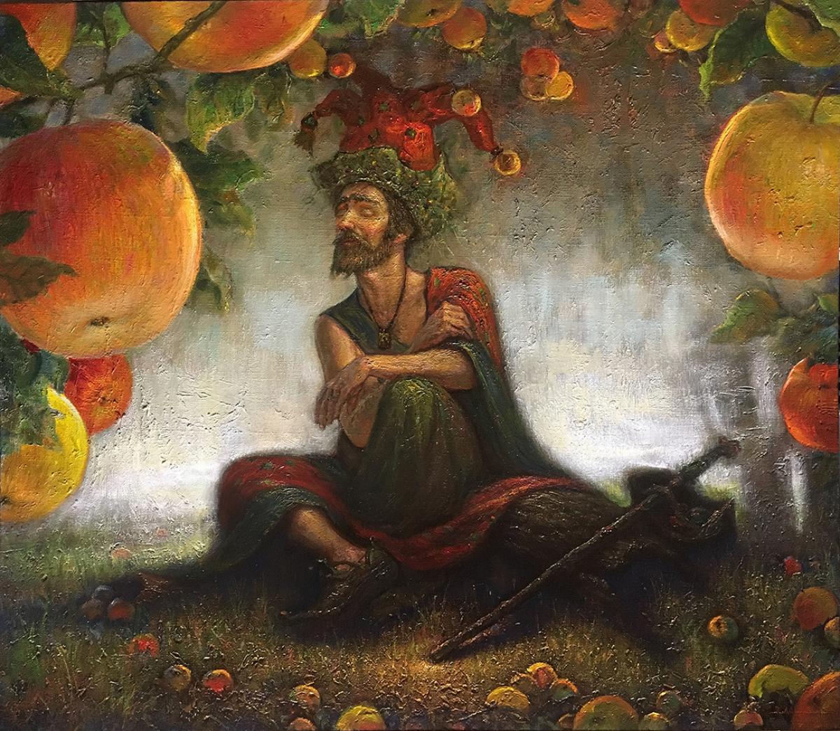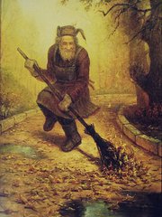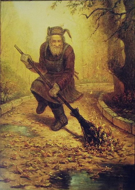 Yardkeeper Dancing with Leaves -50x70 Oil on canvas