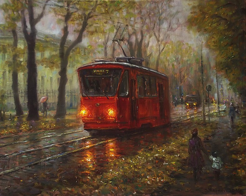 ''Autumn tram'' - oil,canvas,40x50cm